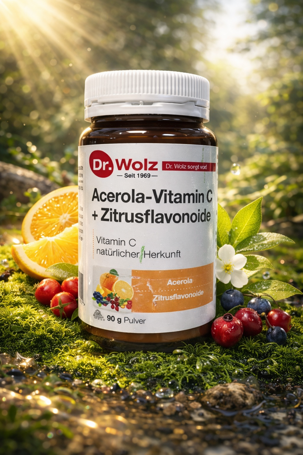 Fruit concentrates from: Acerola, rose hip, bilberry, orange, citruses.