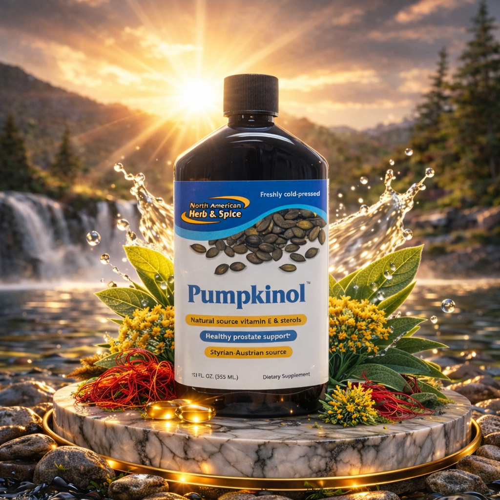 North American Herb & Spice’s Pumpkinol is a delicious, nutritious tonic made from the seeds of a rare pumpkin, which grows only on the hills of south central Austria.
